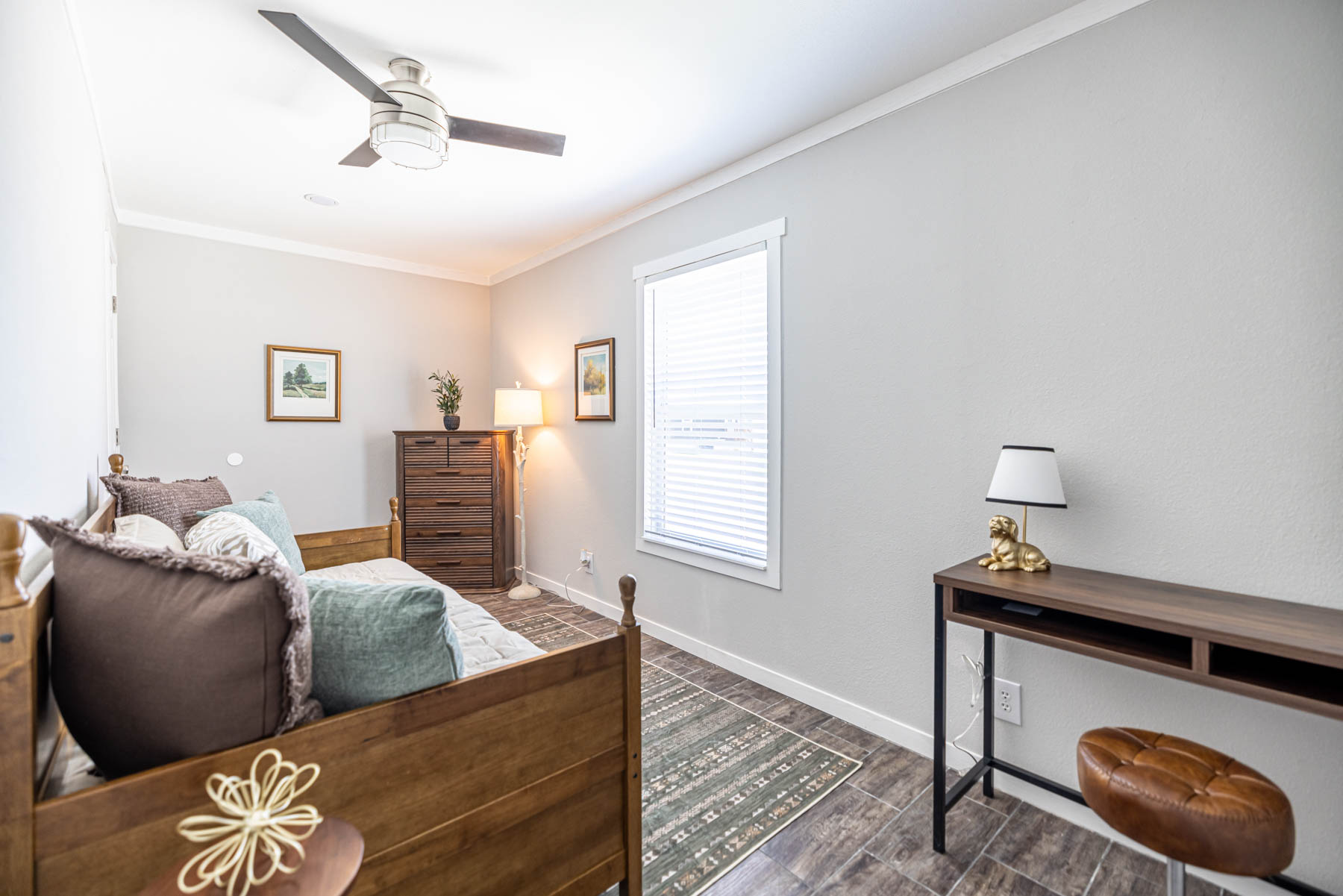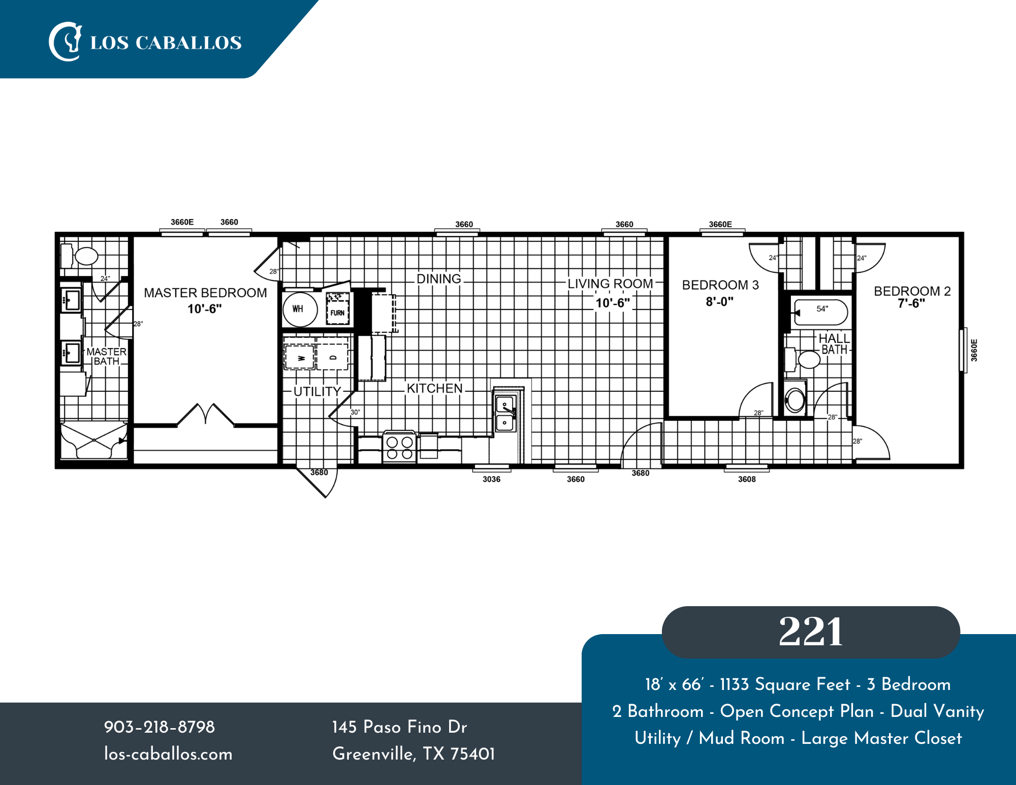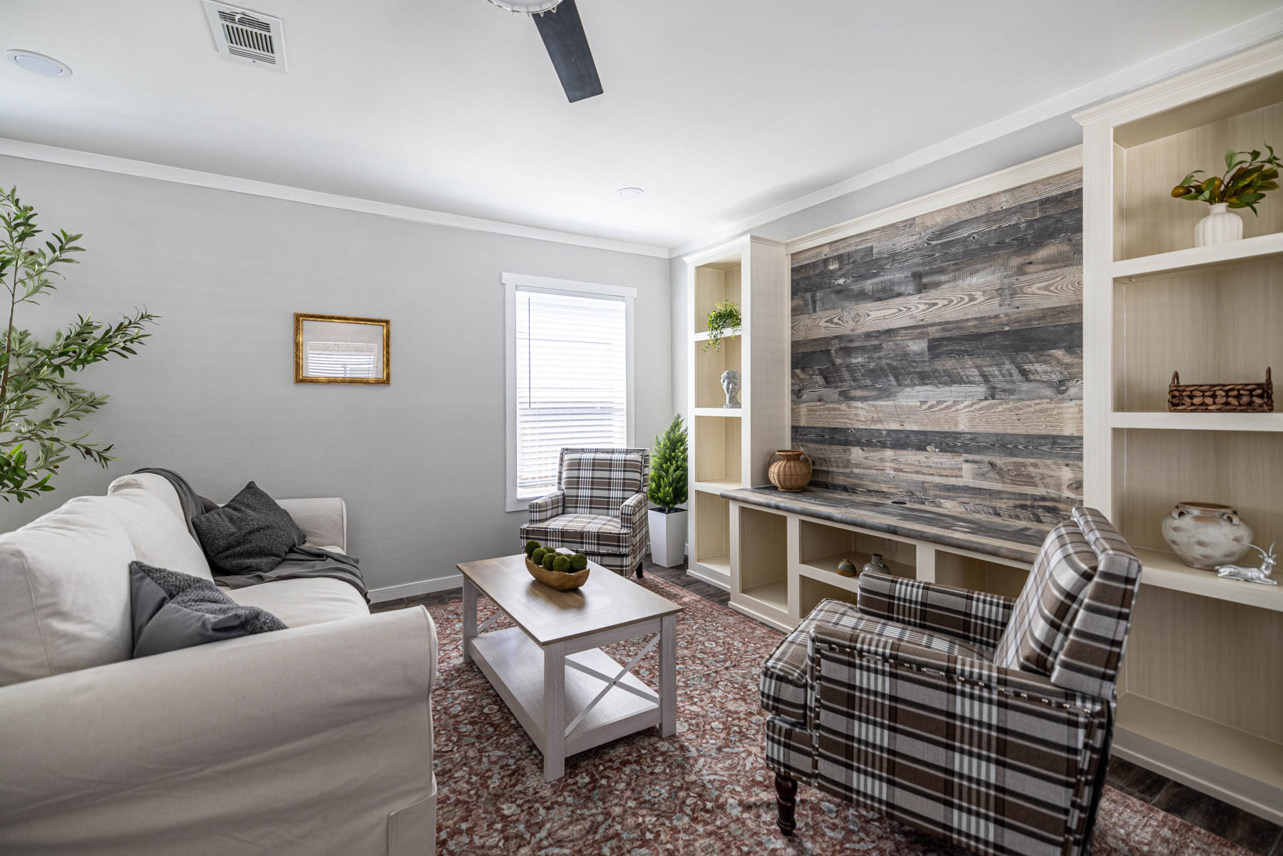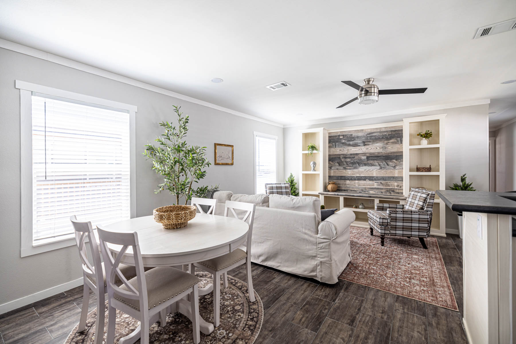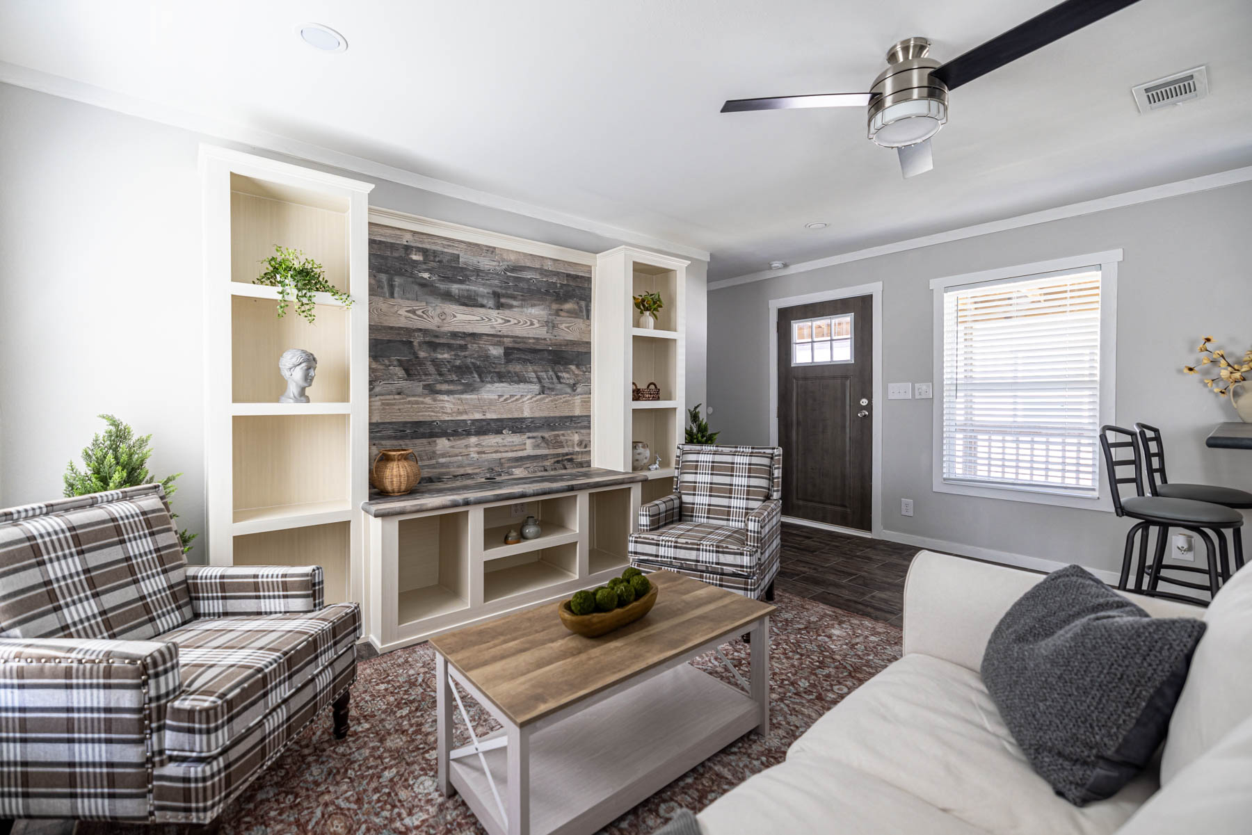 The 221 is a well-designed three-bedroom, two-bathroom home that brings together open living and modern style. The open-concept layout creates a seamless connection between the living area, kitchen, and dining space, offering a comfortable and functional environment for both everyday living and entertaining. At the center of the home, the kitchen features bar seating along with stainless steel appliances and an induction heating range, providing a clean, efficient, and inviting space for cooking and gathering. The layout flows naturally into the living area, where a built-in entertainment center adds both convenience and a focal point for the space. The thoughtful design ensures each area feels connected while still maintaining its own purpose, making the home feel balanced and easy to live in. On the exterior, a two-tone paint scheme adds visual interest and curb appeal, giving the home a distinctive and polished look. The 221 offers a blend of functionality, style, and comfort—making it a great option for a variety of lifestyles.