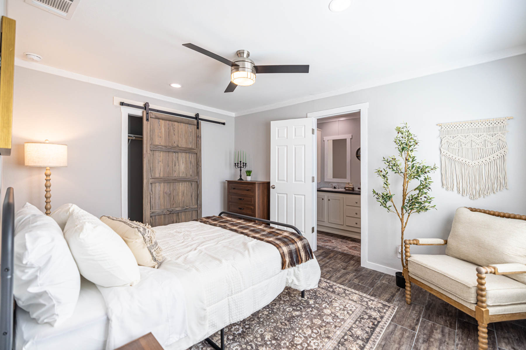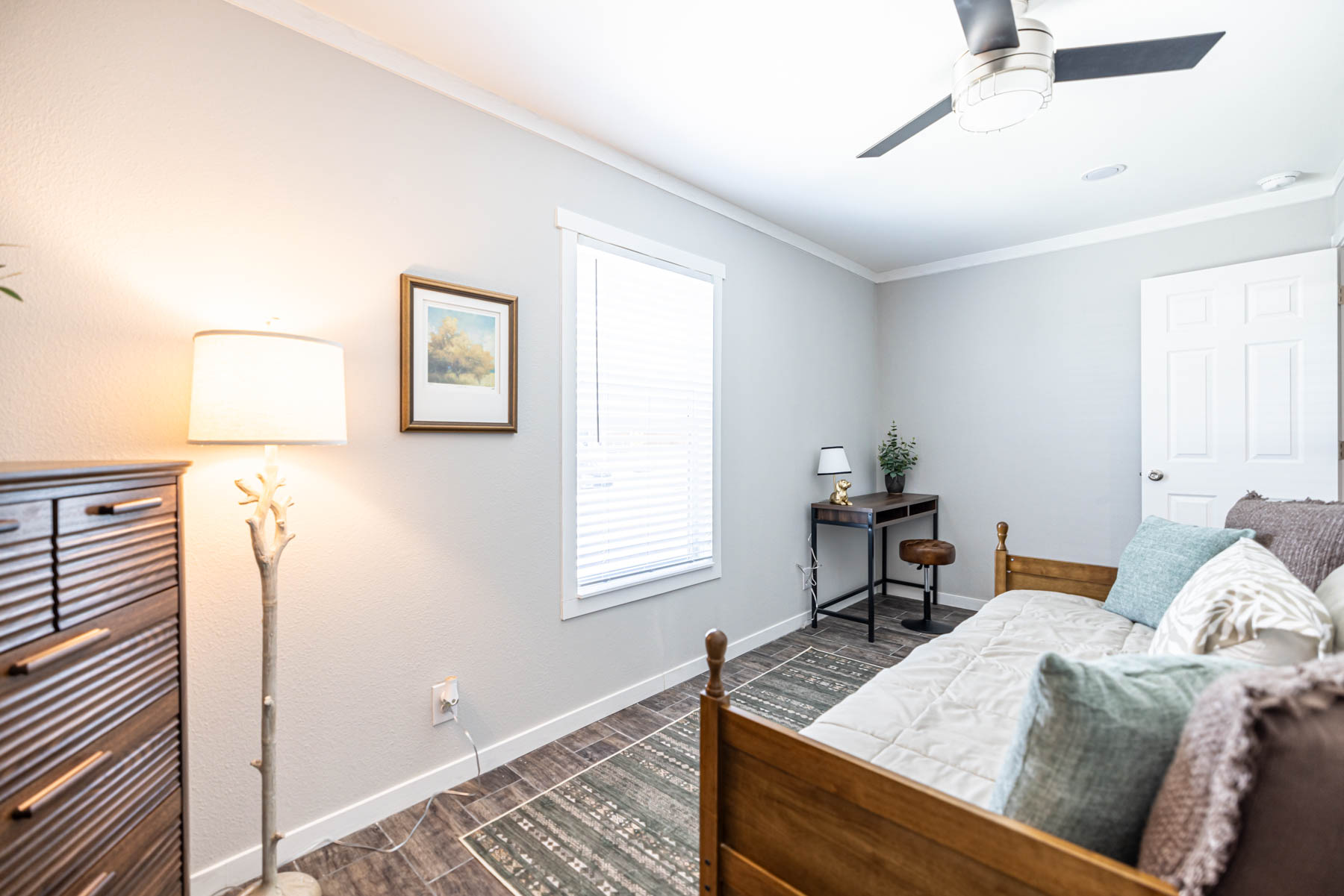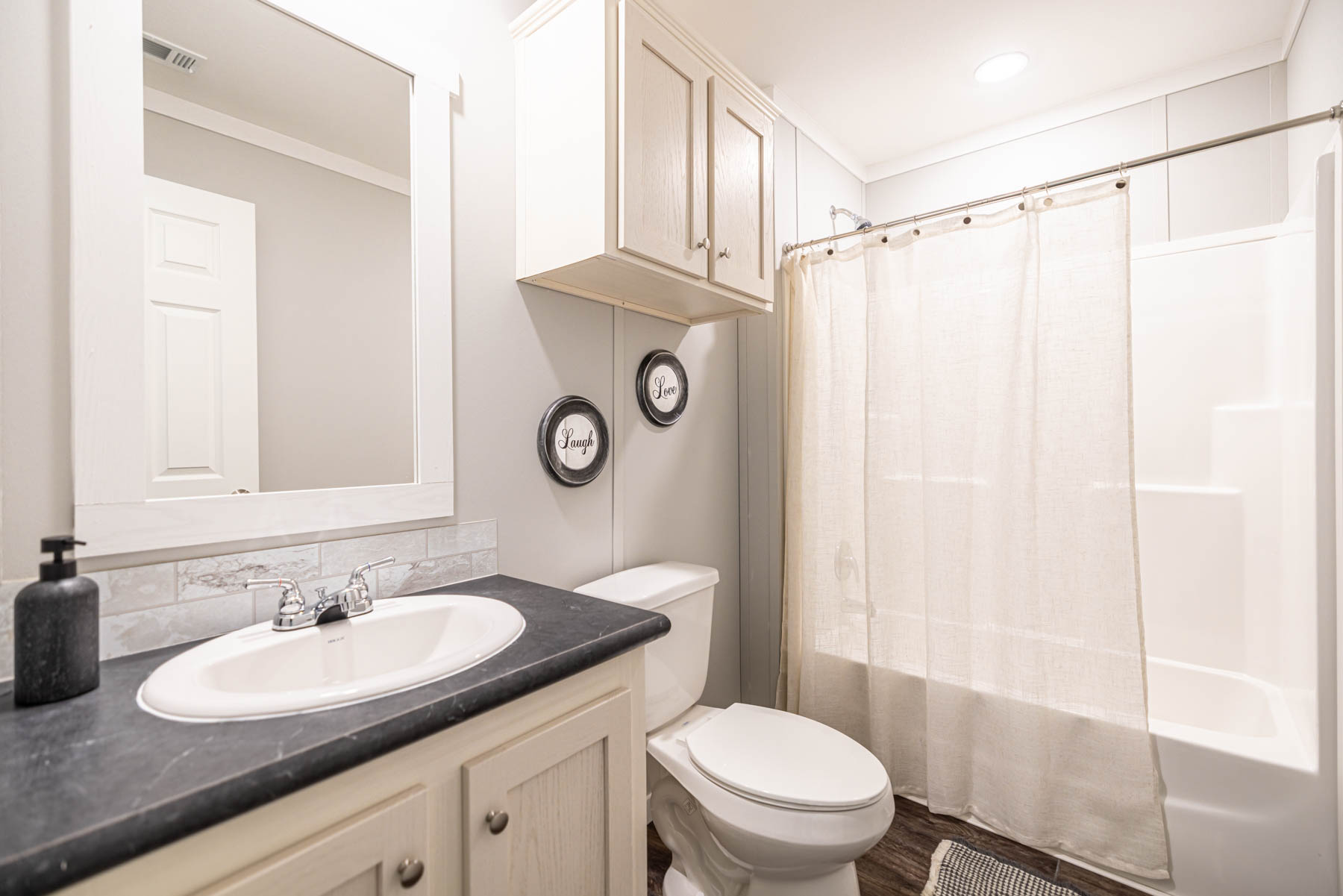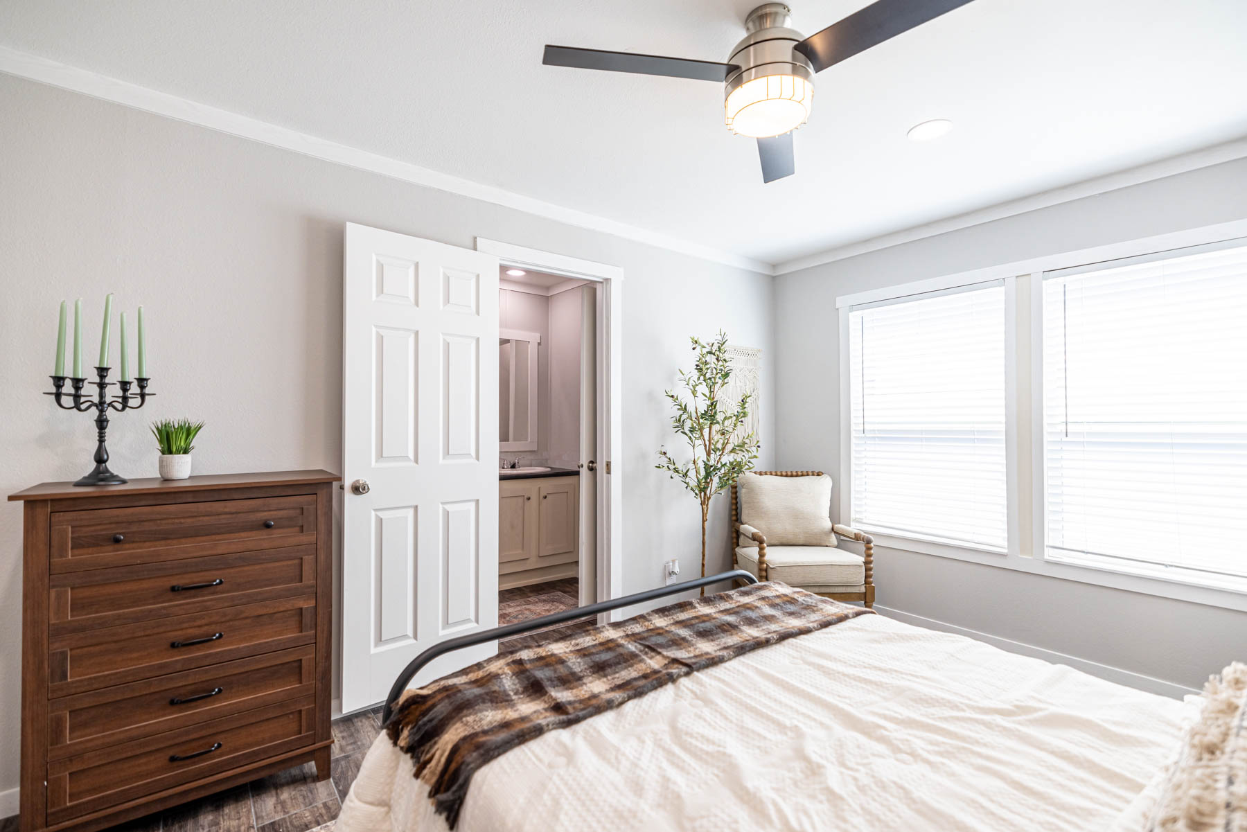 The 221 is a well-designed three-bedroom, two-bathroom home that brings together open living and modern style. The open-concept layout creates a seamless connection between the living area, kitchen, and dining space, offering a comfortable and functional environment for both everyday living and entertaining. At the center of the home, the kitchen features bar seating along with stainless steel appliances and an induction heating range, providing a clean, efficient, and inviting space for cooking and gathering. The layout flows naturally into the living area, where a built-in entertainment center adds both convenience and a focal point for the space. The thoughtful design ensures each area feels connected while still maintaining its own purpose, making the home feel balanced and easy to live in. On the exterior, a two-tone paint scheme adds visual interest and curb appeal, giving the home a distinctive and polished look. The 221 offers a blend of functionality, style, and comfort—making it a great option for a variety of lifestyles.