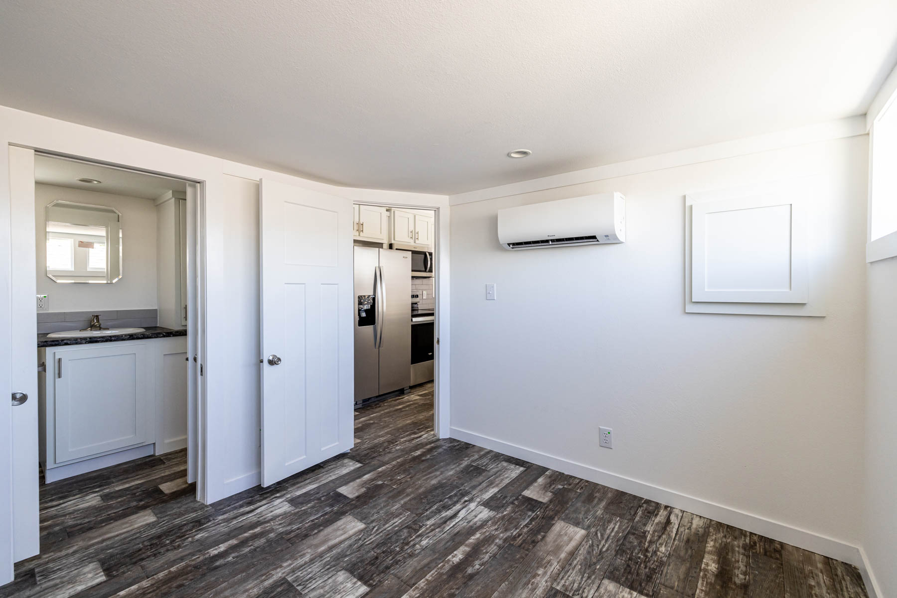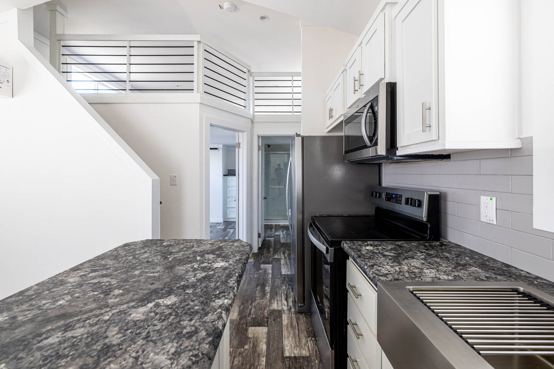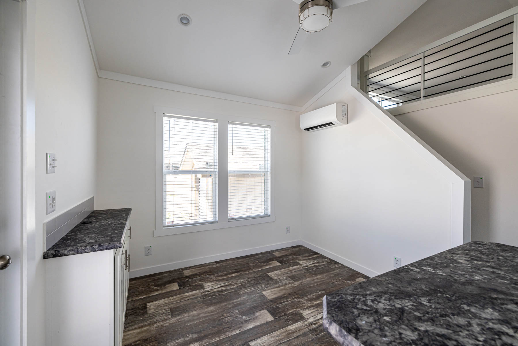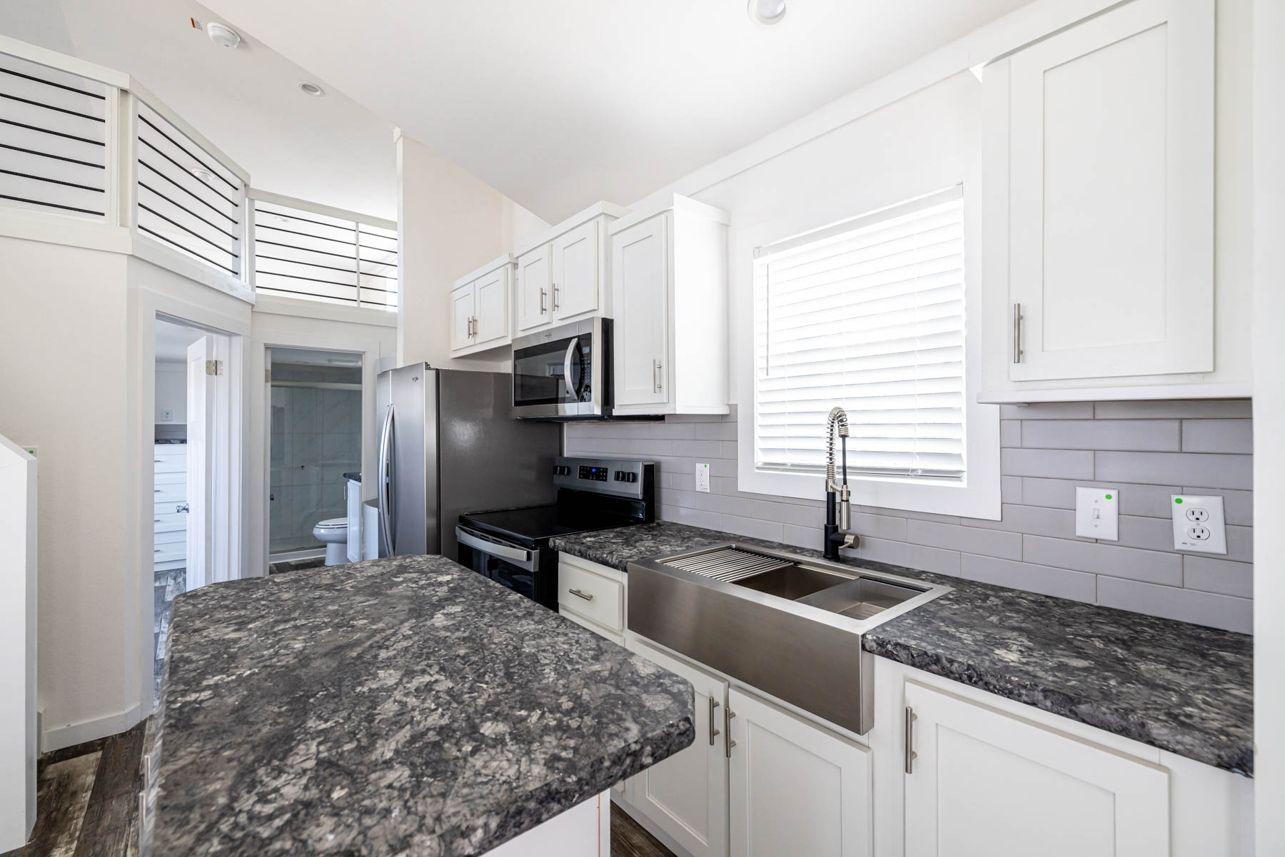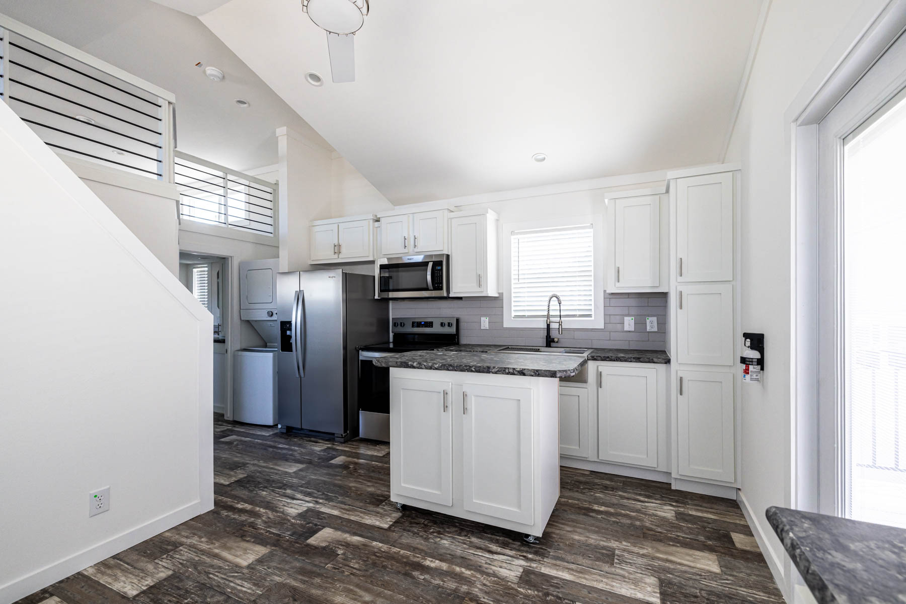 The APS-522A is a smartly designed tiny home that delivers comfort and flexibility within its 380 square feet. Featuring one bedroom, one bathroom, and a lofted area, this home is built to make the most of every inch while maintaining a clean and modern feel. The kitchen is equipped with stainless steel appliances and a movable rolling island, allowing you to adapt the space for cooking, dining, or additional prep area as needed. The open layout flows easily into the living space, creating a functional and connected environment for everyday living. Convenience is built in with an included washer and dryer, while mini-split climate control keeps the home comfortable year-round. The primary bedroom features a built-in dresser, adding practical storage without taking up extra space. The APS-522A combines versatility, efficiency, and thoughtful design—making it an excellent option for those looking to simplify without sacrificing comfort.