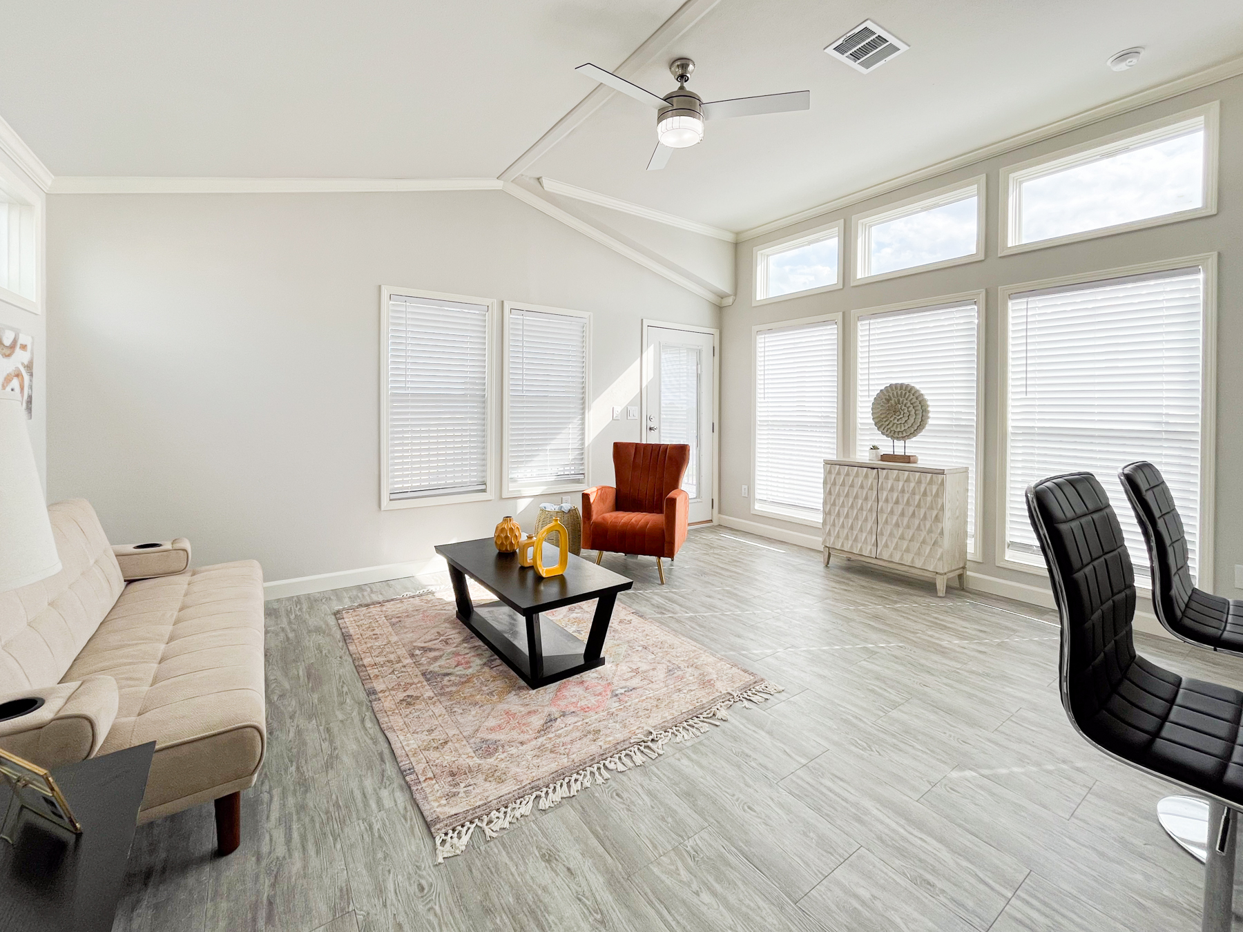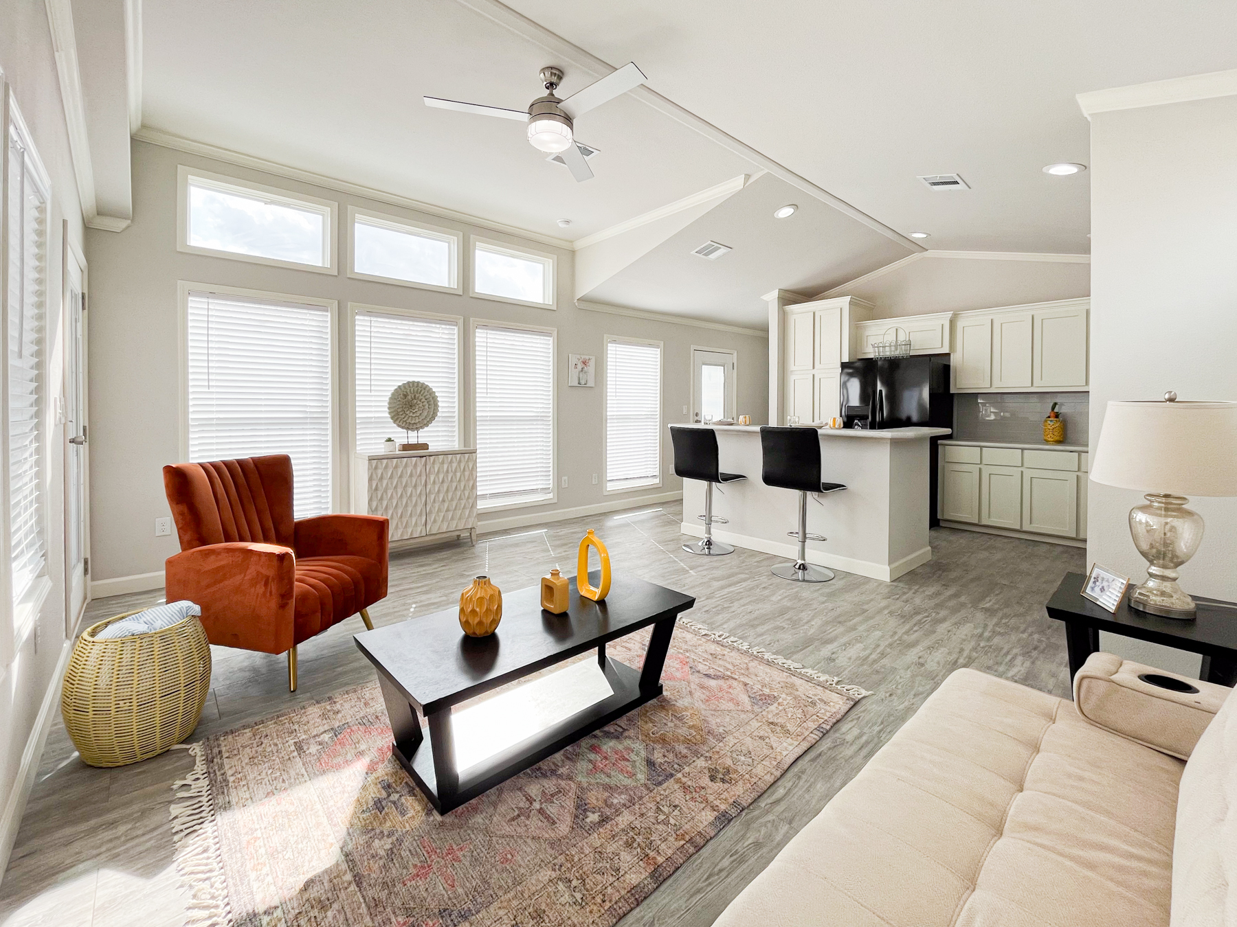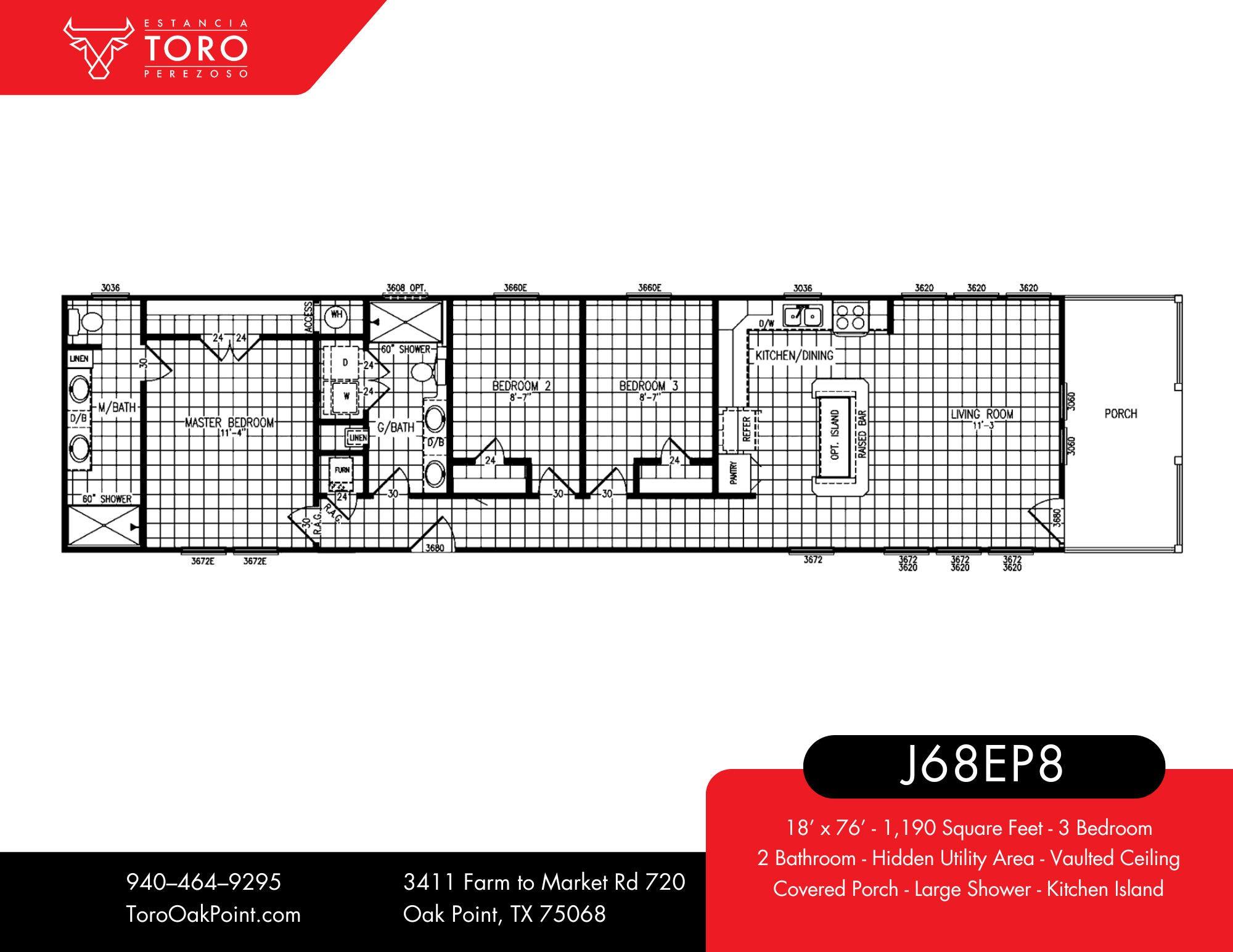 The Crane is a versatile home that is designed to cater to your modern living needs. This innovative home boasts a thoughtful single-section home layout, featuring three bedrooms and two bathrooms. The secondary bathroom even includes a convenient washer & dryer closet, enhancing the home’s practicality. This Smart Cottage comes packed with standard affordable luxury features that include an 8-foot covered front porch with Trex® decking, vaulted ceilings, tall banks of windows in the living room, and a big Ensuite with a spa-inspired bathroom that includes double sinks, an extra 3-door linen cabinet tower, and a walk-in tile shower with massage tower. If that weren’t enough add a sleek kitchen island with seating space, a 6-cabinet pantry, or a gliding bench for the porch. The Crane’s polished look is thanks to its full tape & texture finish. Enjoy ample natural light through its energy-efficient Low-E windows. Its exterior bump-outs add volume and curb appeal, making it a popular beach, coastal, and lake home option. Discover the Crane J68EP8 Smart Cottage—where contemporary living meets flexibility and style.