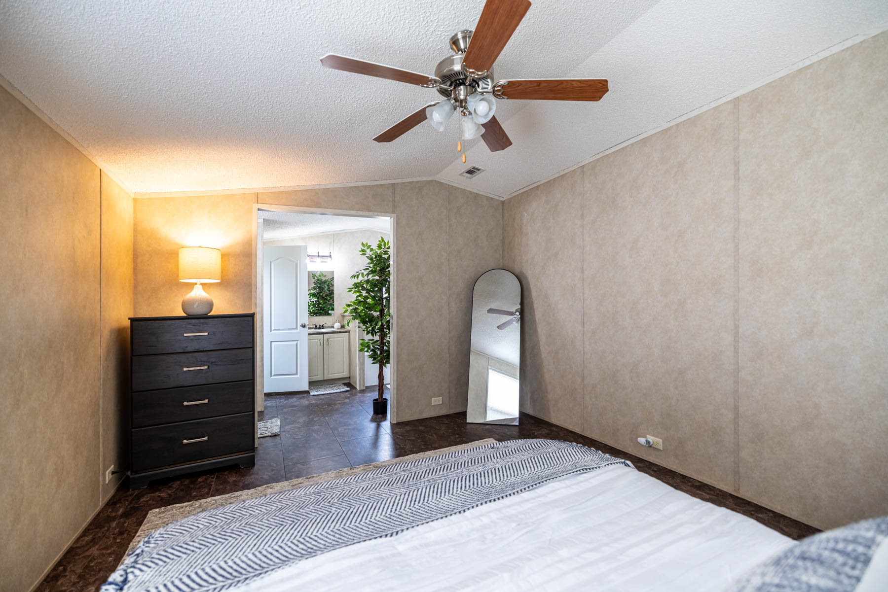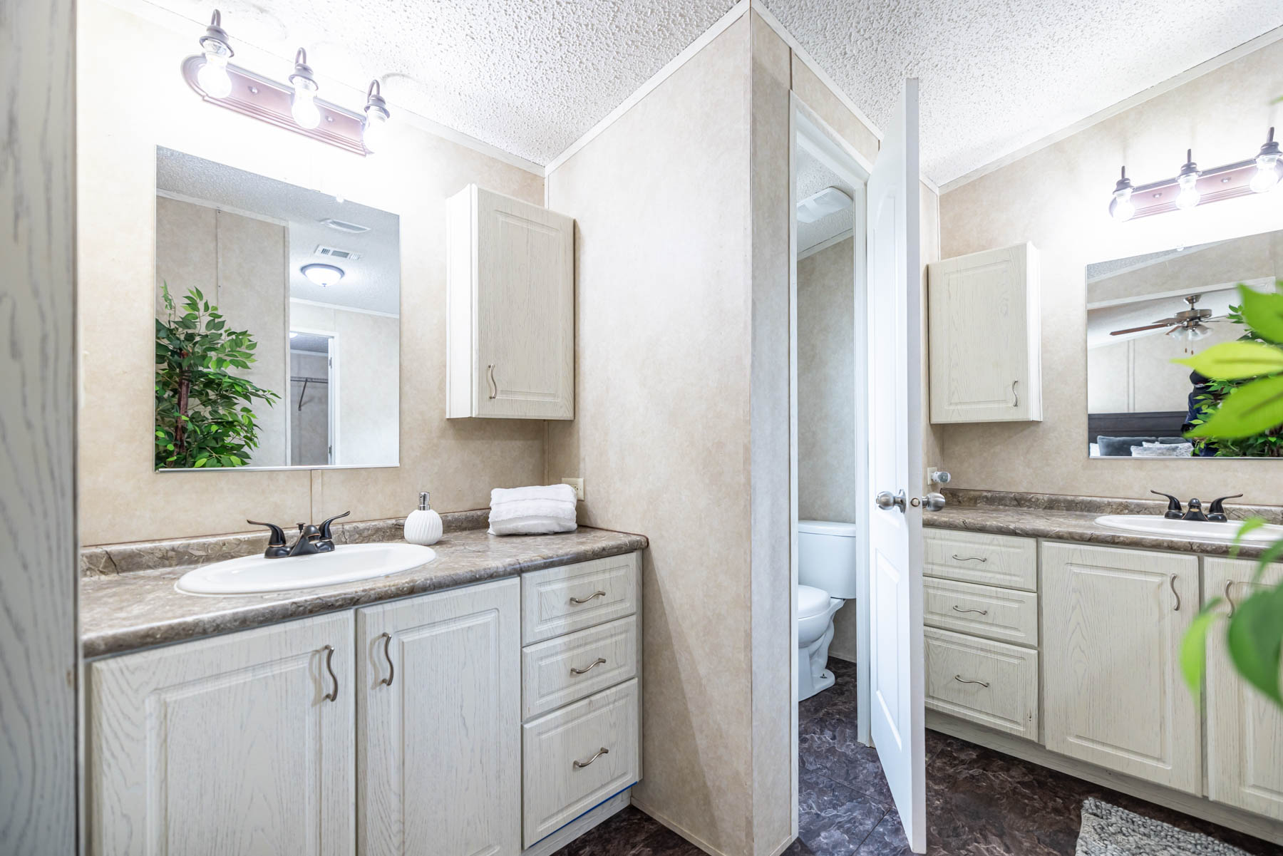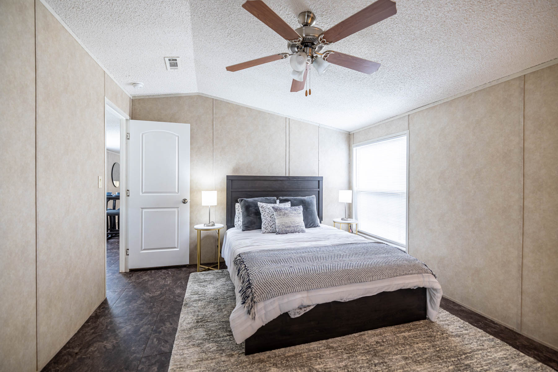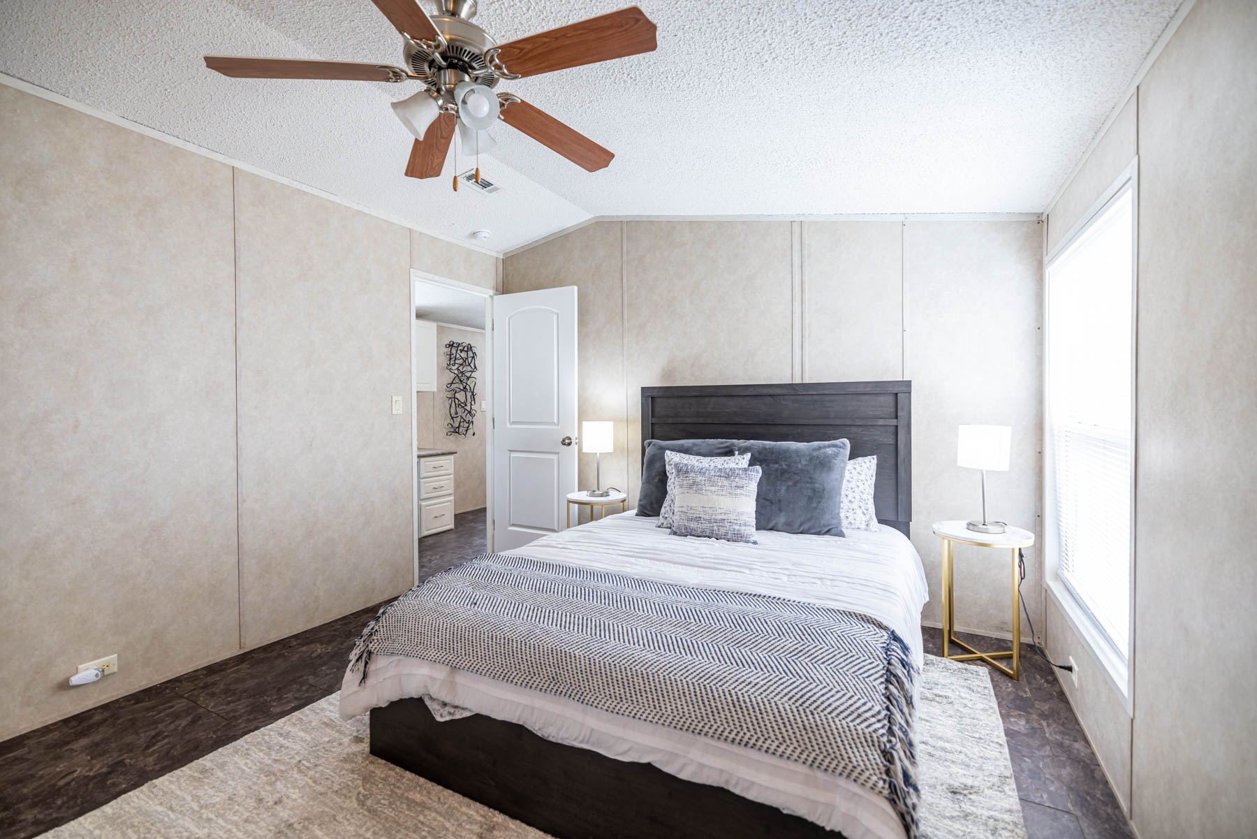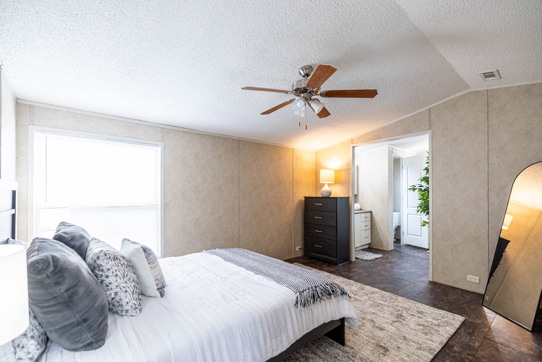 The H-1880-32E is a well-designed home that combines open living with practical, everyday functionality. Featuring three bedrooms and two bathrooms, this floor plan offers a comfortable layout that feels both spacious and easy to live in. The open-concept design seamlessly connects the kitchen, dining area, and living space, creating a natural flow for gathering and entertaining. A kitchen island paired with a large wrap-around counter provides ample workspace and seating, making it the true centerpiece of the home. Vaulted ceilings throughout enhance the sense of space, giving the interior an open and airy feel. The primary suite is designed for both comfort and convenience, featuring a walk-in closet and a well-appointed bathroom with dual vanities, a walk-in shower, and a separate bathtub. A dedicated utility room adds everyday practicality, while the separate dining area offers a defined space for meals or hosting. The H-1880-32E delivers a balance of openness, storage, and thoughtful design—making it a versatile home that fits a variety of lifestyles.